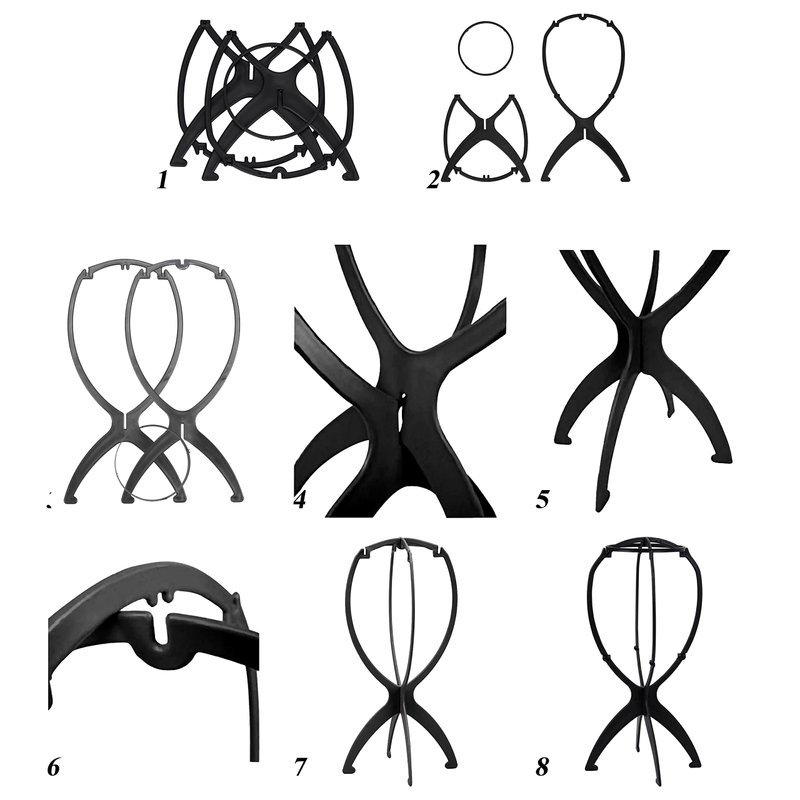 XCZYN Wig Stand Portable Collapsible Wig Head for Short Wigs Durable Plastic Wig Display Folding Wig Holder Wig Dryer Travel Short Hair Extensions Stands (1Pc Black)