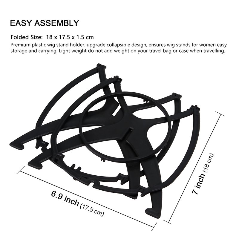 Specification: Material: PVC plastic. Color: black, white, pink. Dimensions: 14 inch height - steady and durable design for short wigs and wigs less than 14 inches, 0.16 inch thickness plastic makes it firmer and more durable ensures not easy breakage and long terms of use. Unfolded Size: ββ34.4 x 17.5 x 17.5 cm Folded Size: β18 x 17.5 x 1.5 cm Easy Assembly: collapsible design ensures easy storage and carrying, itβs almost the same way to assemble it as other ordinary wig stand. You could check pictures instruction if meet problems when assembl. Light weight and portable, easy to carry and hold, do not add weight on your travel bag or case when travelling. If you have many wigs, the wig stand can help you storage it perfectly and keep its shape, extend the wigs' life, and easy for you to find the wig you want. Can be put on your dressing table or on wig store display shelf, better showing the effect. While if you are not satisfied with the product, you will enjoy Amazon 30-day refund and return service since the date of your purchase.