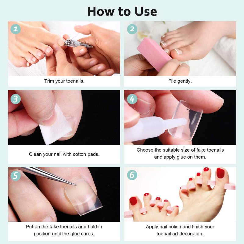 - Easy to use and shape: Our fake toe nails are very easy to use and shaped with a file, even a beginner can instantly get a manicure effect.