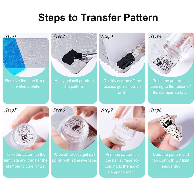 - 【Warm Tips】Clean the nail stamper and try another stamping nail polish if you can’t pick up the images. Use scotch tape or lint roller or alcohol to remove nail polish or dirt from the stamper. DO NOT wipe with acetone, nail polish remover or cotton.