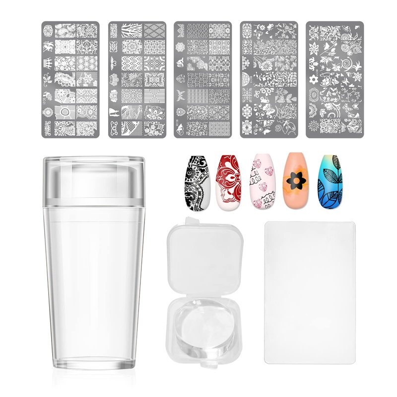X&D Nail Art Stamper Clear Jelly Nail Art Stamping Transparent Silicone Rubber Nail Polish Stamper with Acrylic Scraper, Spare heads, Stainless Steel Plate Kit for French Tips and Transfer Images B