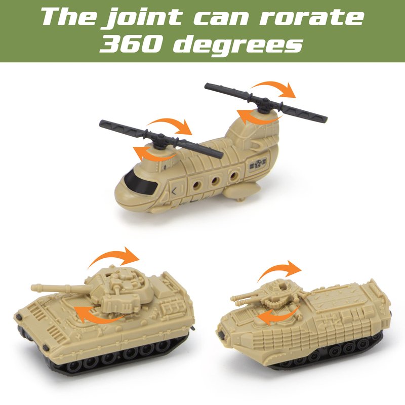 - Realistic Details: The heads and tails of military jet aircraft can be opened. The missiles can be fired by pressing. The gun can be rotated and the board can be retractable. These realistic details bring more happy time for children. There are more details to explore.