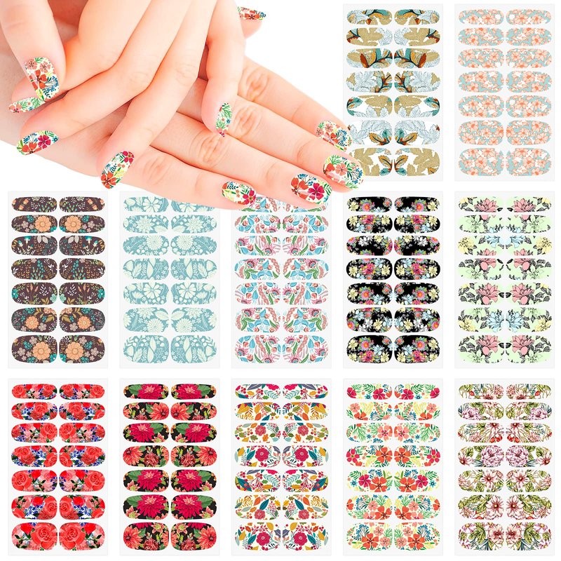 - 🌺【Package Contents】:Comes with 12 sheets flower full nail stickers in different colors and sizes, each sheet contains 14 pieces, totally 168 pieces, sufficient to meet your DIY nail art decoration needs, comes with 1 piece moon shape nail file, can bring much convenience to the DIY process.