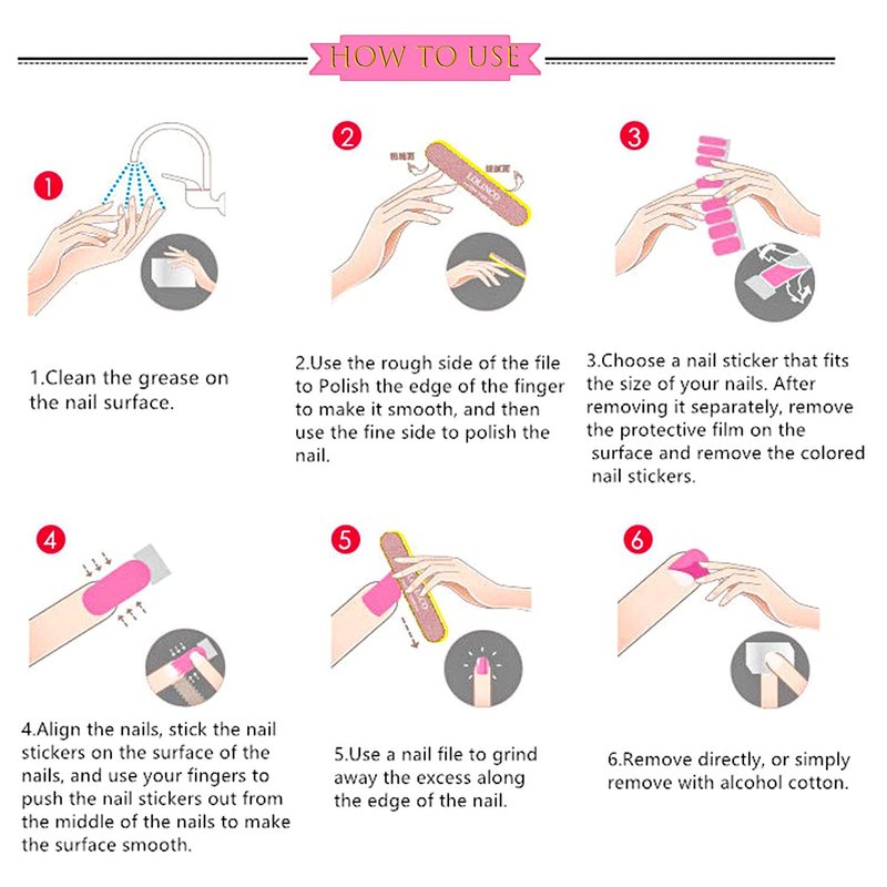 1)Do not apply on cuticle and skins. Leave a bit space between nails with cuticle, so the stickers can keep for longer