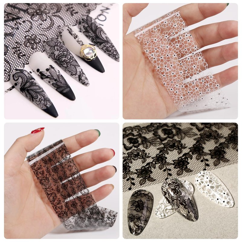 【Black White Flower Lace Design】:These flower lace nail transfer stickers are designed in black white colors and various flower patterns, novel and exquisite, you can choose according to your makeup and clothes, which will bring you more charms.