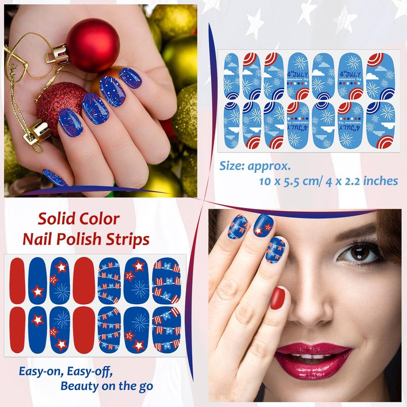 XEAOHESY 224 Pieces 16 Sheets 4th of July Nail Polish Strips for Women Independence Day Nail Wraps Self-Adhesive Red Blue Solid Color Nail Strips Nail Polish Stickers for Memorial Day