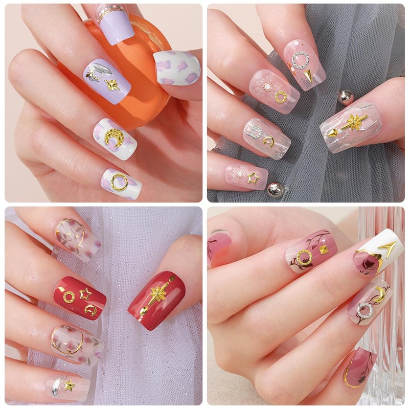 - 【Exquisite Design】: These gold silver nail charms are featuring with different shapes and sizes. Including ring, star, moon and other irregular shapes. Gold silver color make them cuter and more delicate, shining under lights, sparkling and exquisite, can help you create eye-catching nail decoration effect.