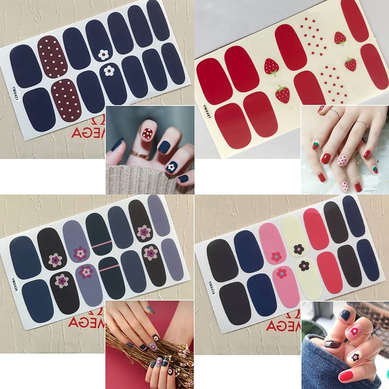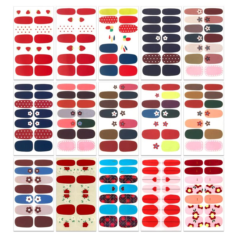 • 🎀【EXQUISITE DESIGN】: these full wrap nail strips including various styles such as flower, Strawberries, Polka dot, solid color, rainbow and so on. which is fashionable to mix up with different style everyday, so it will make your nails more dazzling and charming.