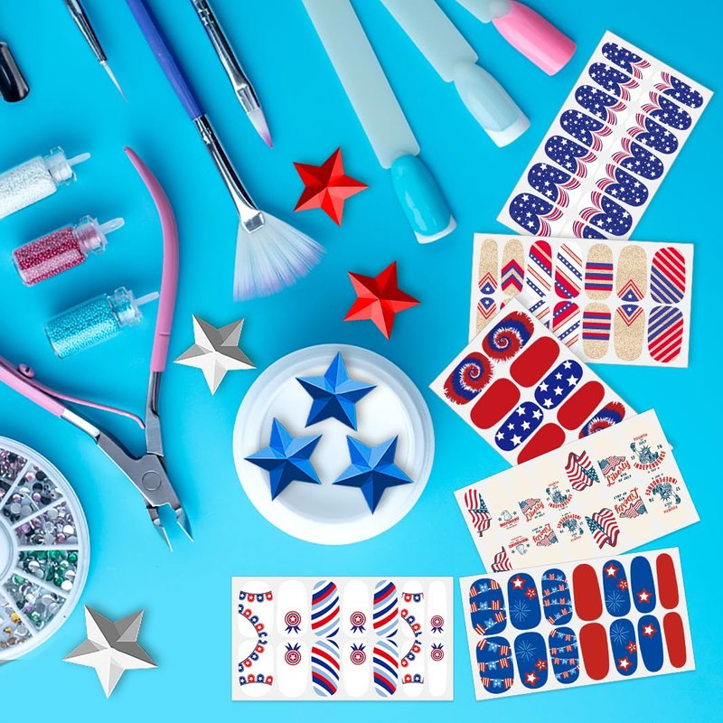 XEAOHESY 84 Pieces 6 Sheets 4th of July Nail Polish Strips Patriotic Nail Wraps Independence Day Nail Strips Self-Adhesive Nail Polish Stickers for Memorial Day(Style-2)