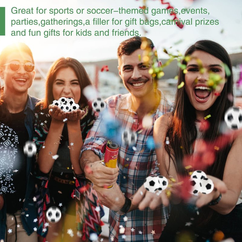 - Wide Application:These soccer bouncy balls are great for sports or soccer-themed games,events,parties,and gatherings;they can also be a filler for gift bags,carnival prizes,and fun gifts for kids and friends.They will bring more fun and joy to you and your kids.