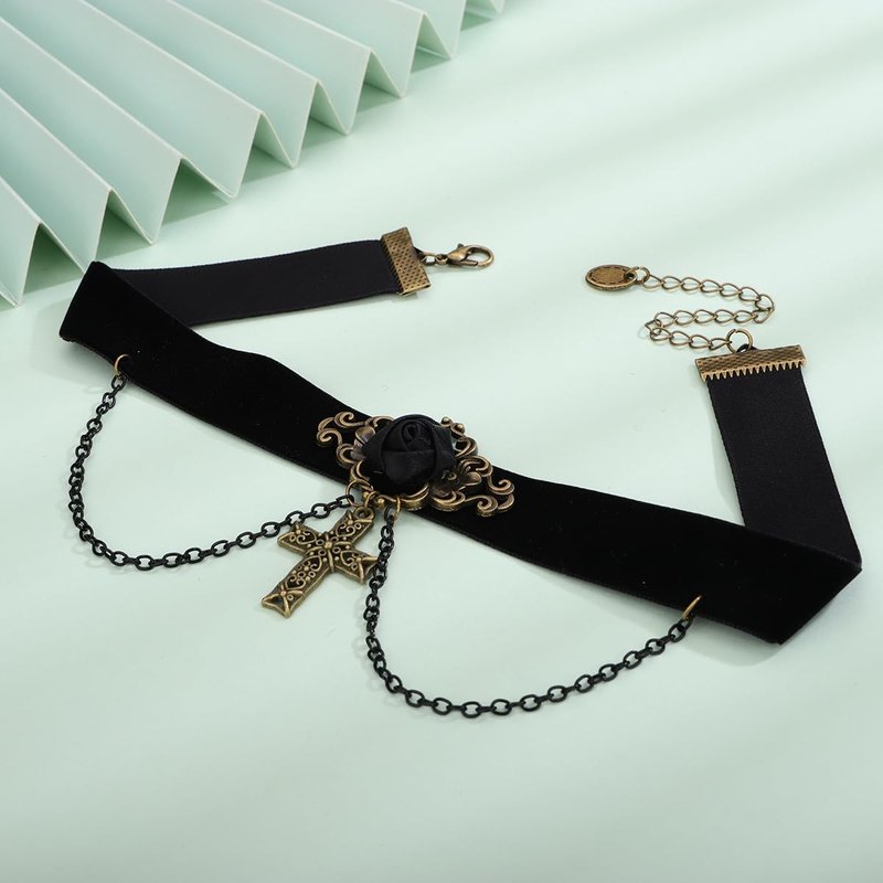 Xerling Black Gothic Wrap Choker Rose Flower Cross Pendant Necklaces Boho Chains Choker Necklaces for Women Vintage Costume Necklaces