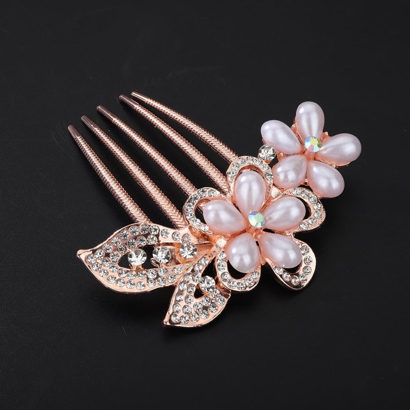 Xerling Elegant Pearly Flower Hair Comb Wedding Bridal Floral Pearl Hair Side Comb Teeths Rhinestone Hair Styling Accessories Decorative Headpiece for Updo Bun Women Girls (comb 1)
