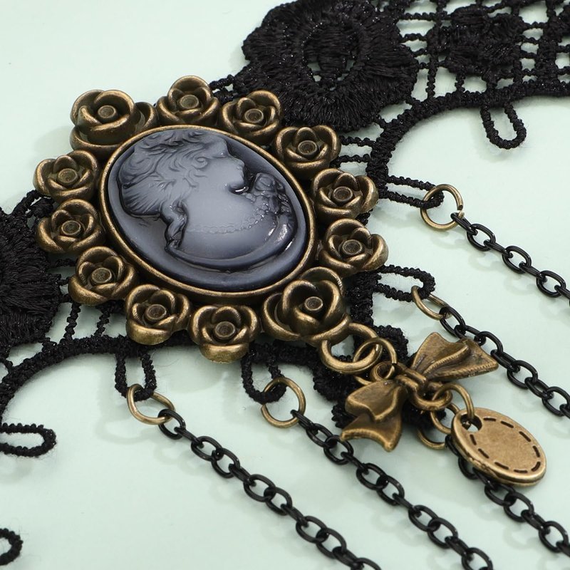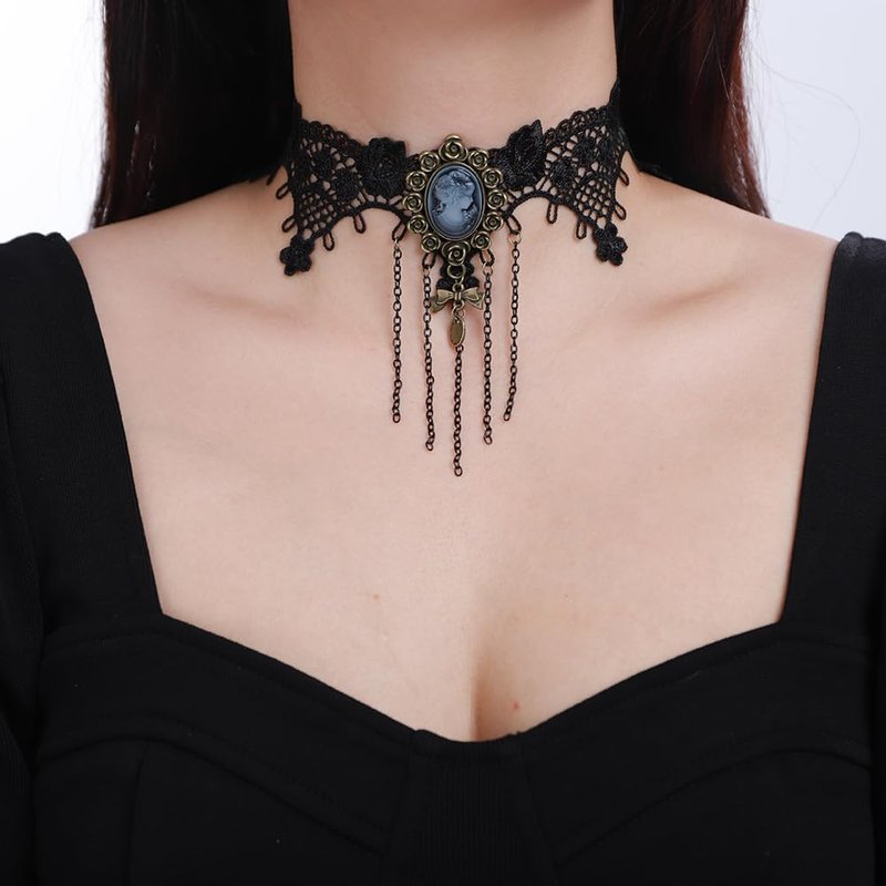Xerling Tassel Black Lace Choker Portrait Floral Necklace Costume Jewelry for Women Halloween Festival Chains