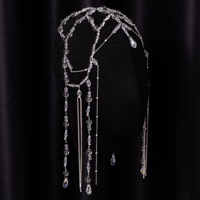 Xerling Transparent Crystal Beads Tassel Cap Headpiece 1920s Flapper Layered Head Chains Wedding Bridal Head Jewelry Cleopatra Hair Accessories for Women