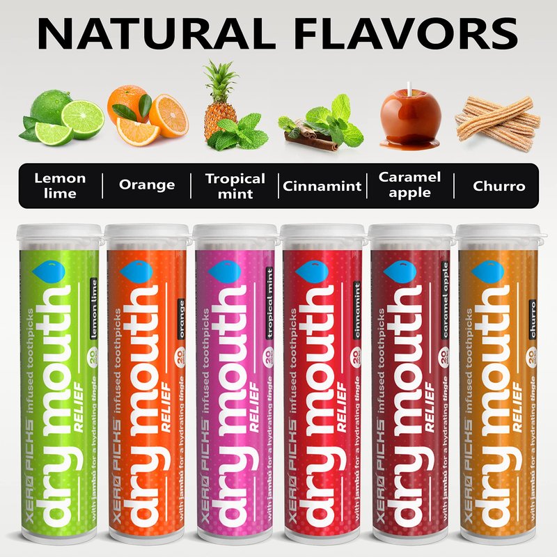Xero Picks Dry Mouth - Infused Flavored Toothpicks for Long Lasting Fresh Breath & Dry Mouth Prevention (Variety 6 Pack)