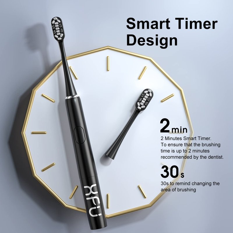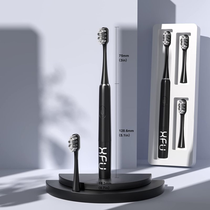 XFU Sonic Electric Battery Toothbrush for Adults and Kids, 3 Brush Heads, with 3 Modes and Waterproof IPX7, Bulid in 2 Mins Timer 24,000 VPM XFU-2007 (2007 Black)