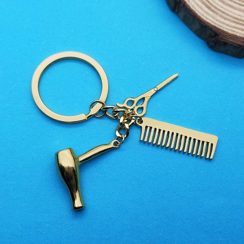 - This keychain comes with charming design -- scissors, blow dryer, comb charm. poignant gift for that special person and for yourself too.