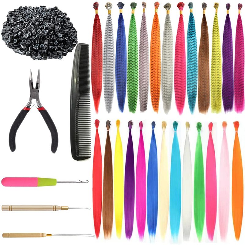 - Color: 13 Pieces Feather Hair+13 Pieces Rainbow Hair+Hair Tools Kit