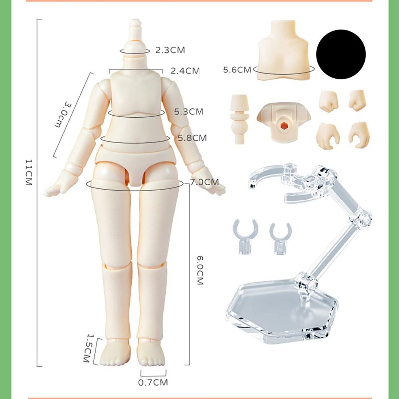 1:About size: two sizes. The standard version is about 9.6cm tall. The extended version is about 11cm tall. Please refer to the product picture for specific size information. Because the size is measured manually, there will be some errors. Please understand. This body is similar to OB11CM, and clothes and shoes accessories can basically be used universally.