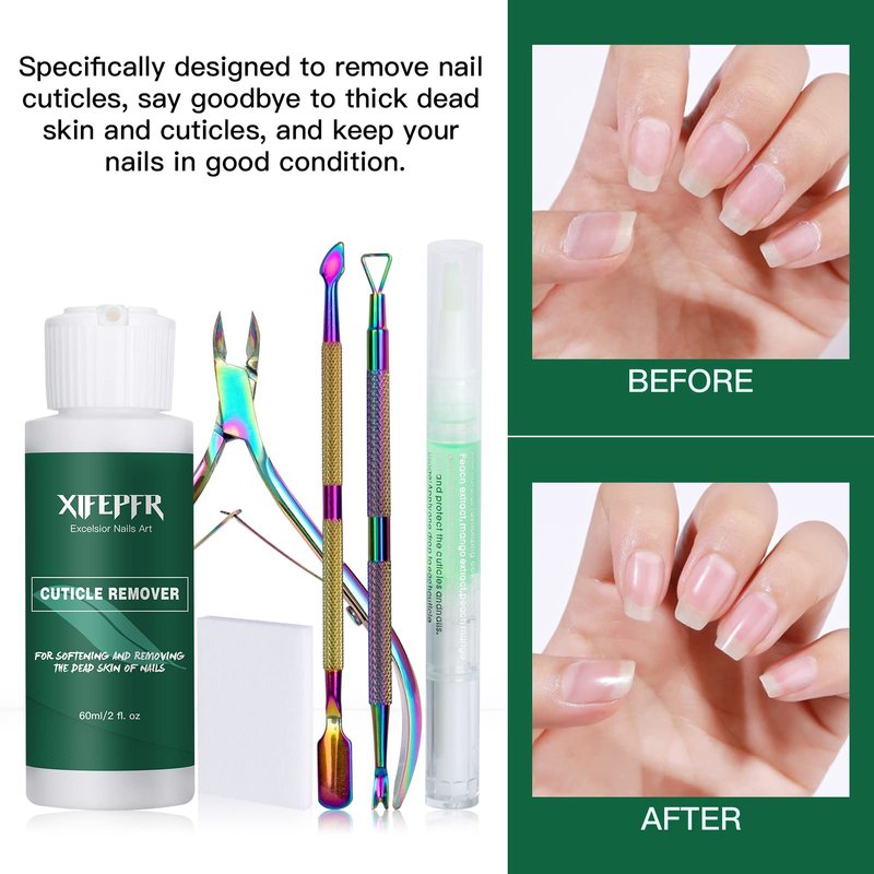 - XIFEPFR Quality Service: We aim to provide you with the best products, if you have any questions about this cuticle removal kit, please feel free to contact us and we will answer your questions. Warm tip: Shaking upside down before use will make it easier to squeeze out the cuticle cream. Nail tools are sharp, please use them carefully. The first time you use the nail cuticle oil pen if there is no oil on the tip, just turn the top cap.