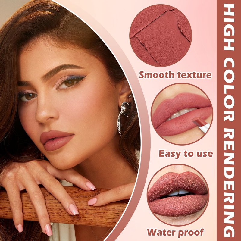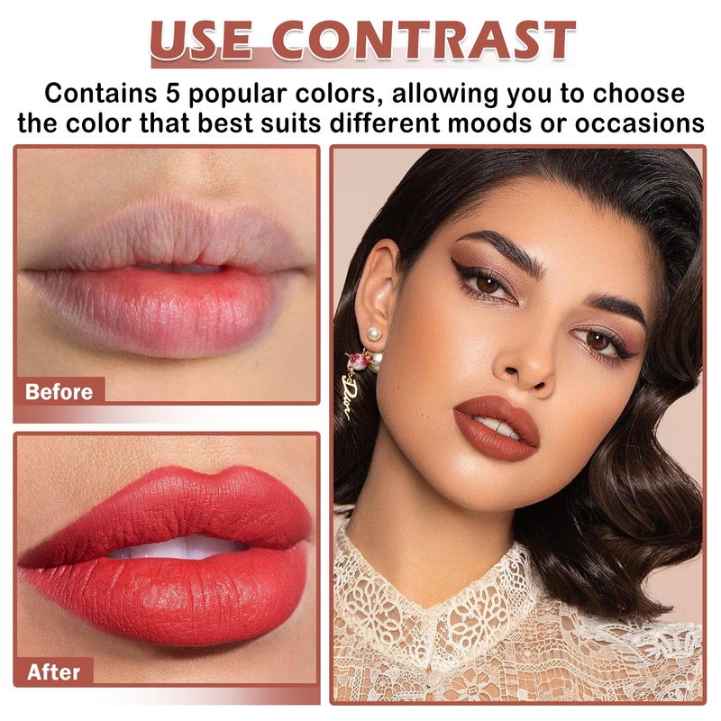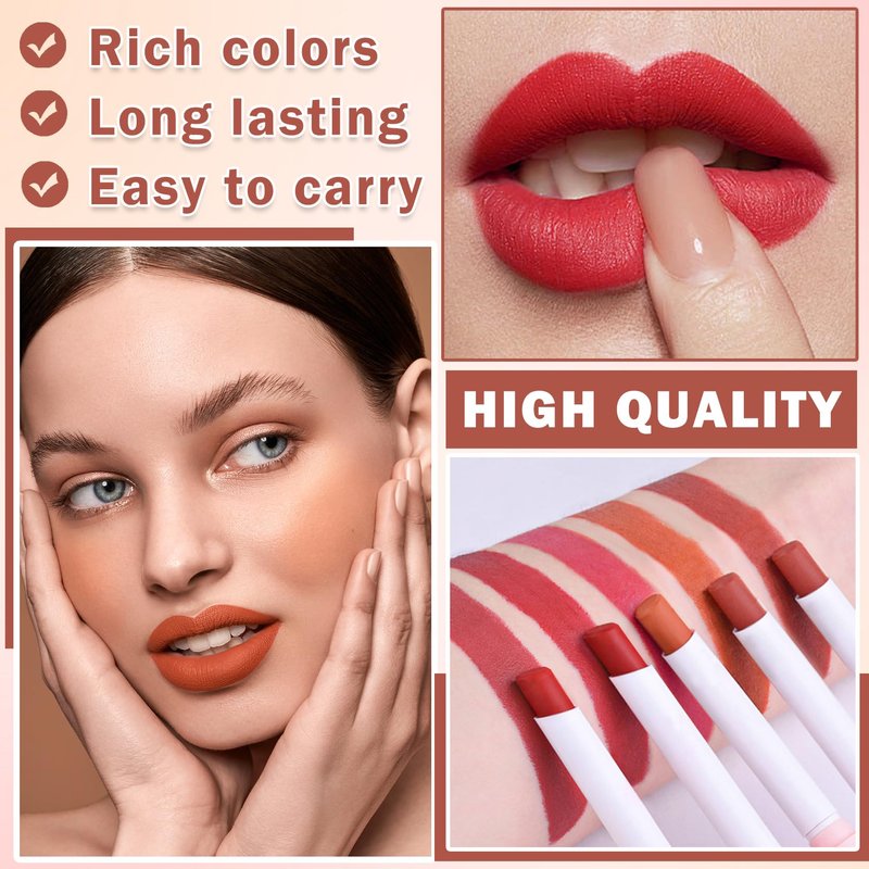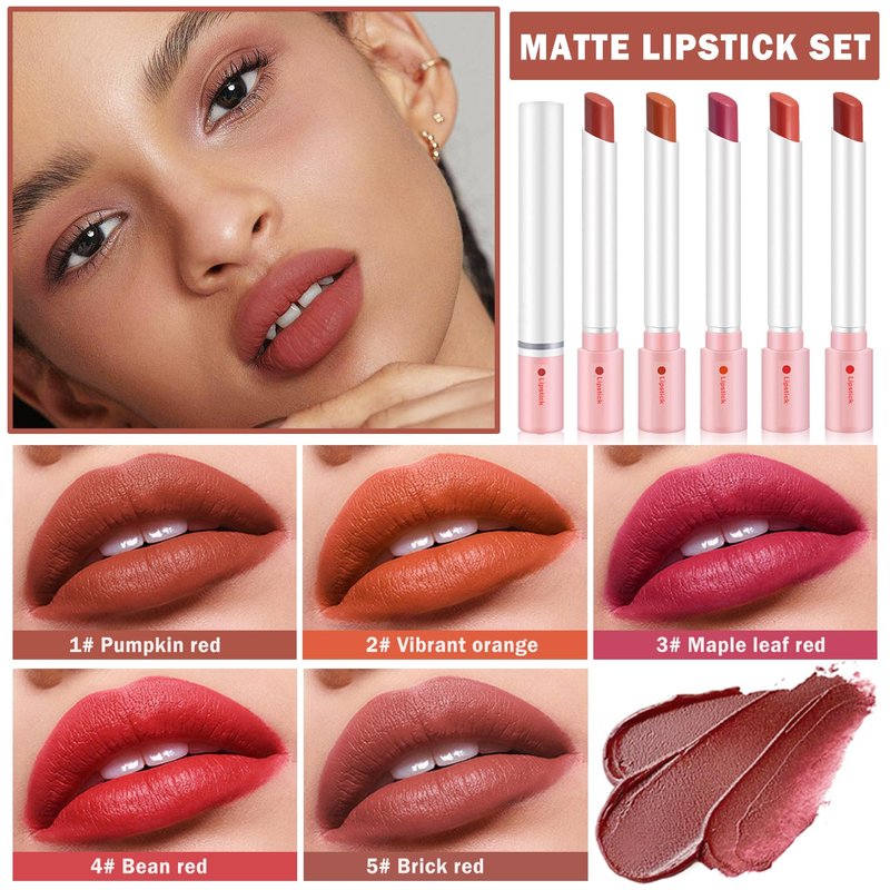 - 【Matte Lipstick Set】Matte cigarette lipstick set from classic red to fashionable rose, each color can make you show a confident and charming style. Meets different skin tones and makeup needs.