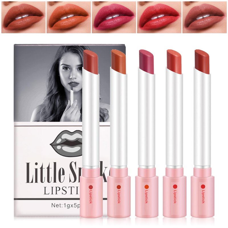 XINGXYUEL 5 Colors Matte Cigarette Lipstick Set Velvet Little Tube Cigarettes Lipstick Lip Gloss Set Non-Stick Cup Lip Stain Long Lasting Waterproof Red Lipstick Lip Makeup