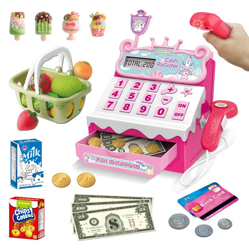 - Ideal Gift Choice for Children: The toy cash register with scanner is a must-have toy to encourages kids to exercise hand-eye coordination and learning skills while playing. It is a perfect gift for kids, girls, boys, toddlers on holidays, parties, birthdays, Christmas, or New Year. Kids will love this surprise with this play cash register for kids ages 4-8