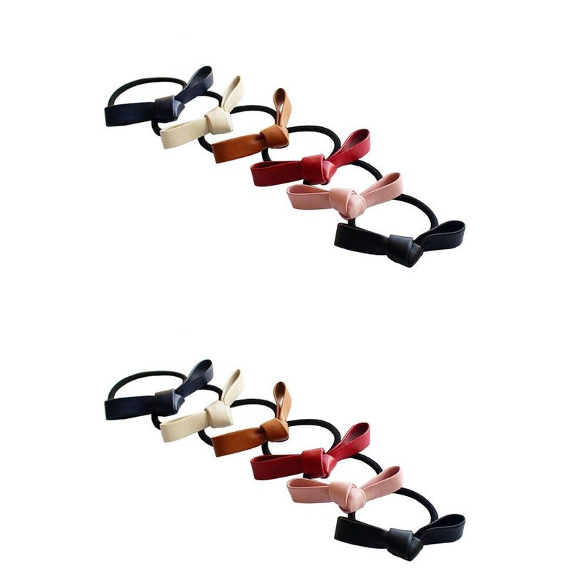 Xinjincang 6Pcs Multicolour Small Knotted Bow Hair Ties PU Leather Elastic Hair Bands Simple Hair Ropes Ponytail Holder Hair Elastics and Ties Hair Accessories Hair Care, Black