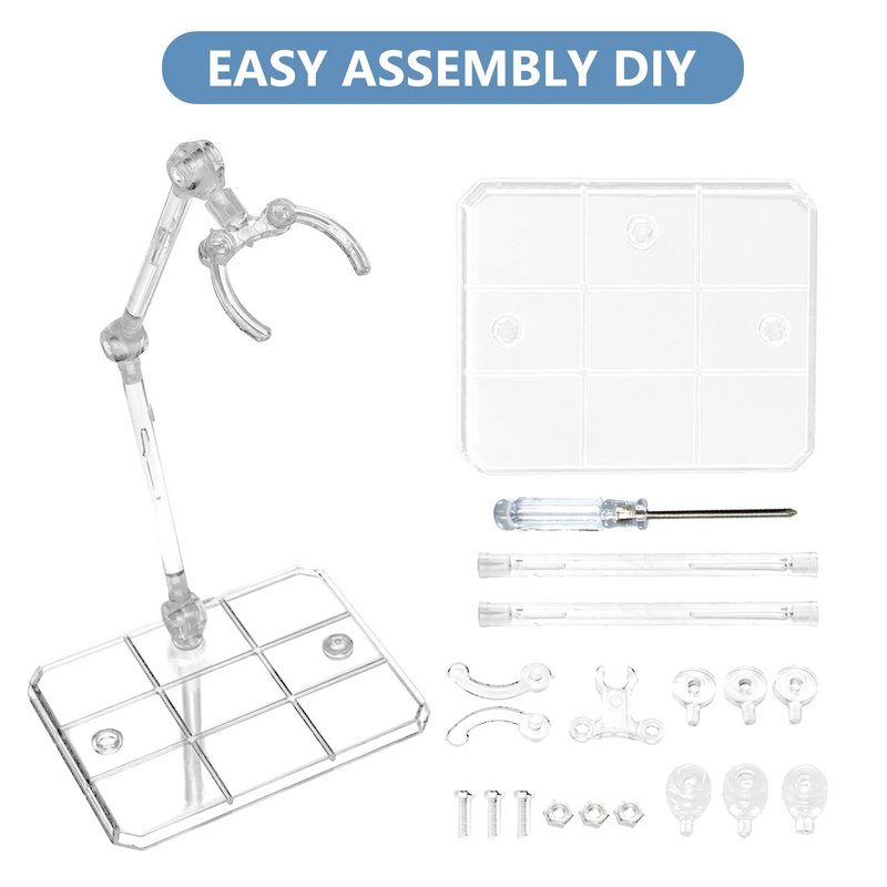XISTEST Action Figure Stand, 8 PCS Assembly Action Figure Display Holder Base Doll Model Support Stand Compatible with HG RG SD SHF Gundam 1/144 Toy with Screwdriver Transparent