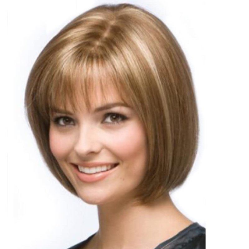 XIUFAXIRUSI XIUFAXIRUSI Highlight Blonde Bob Wigs for White Women Short Straight Bob Wig with Cute Bangs Chin Length Synthetic Wig for Daily,Party Use
