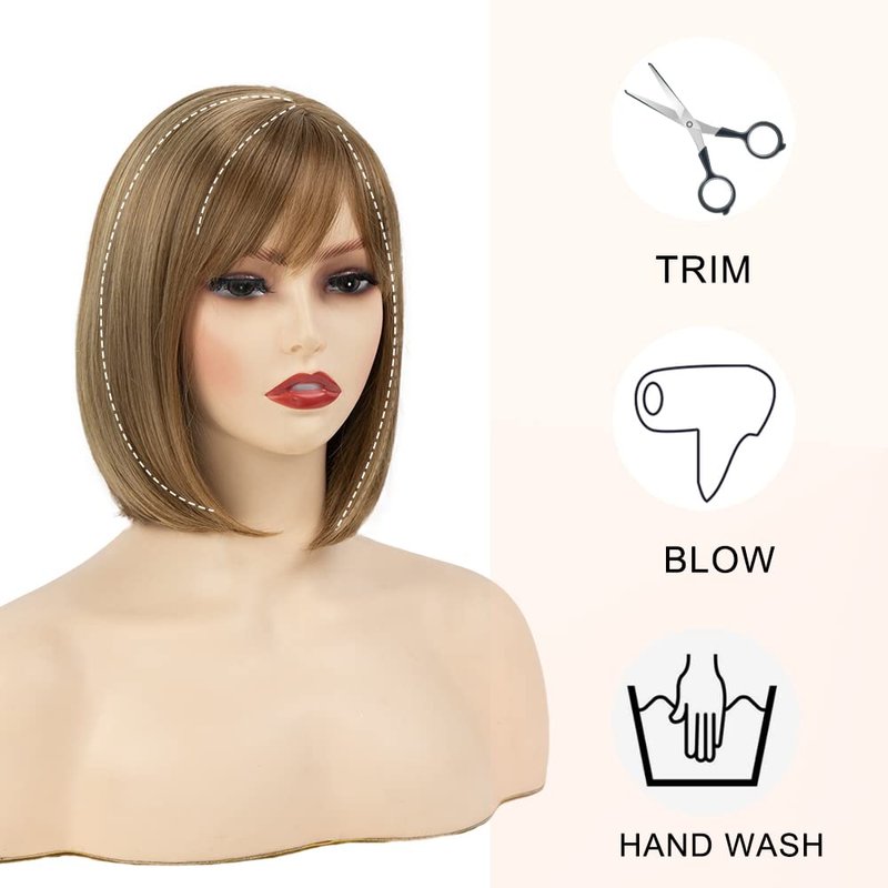 • Natural Hair Wig:blonde bob wig with bangs can shape your face perfectly,The hair texture is as soft as your own hair, if you think bangs and hair are too long,please freely trim according to your favorite length