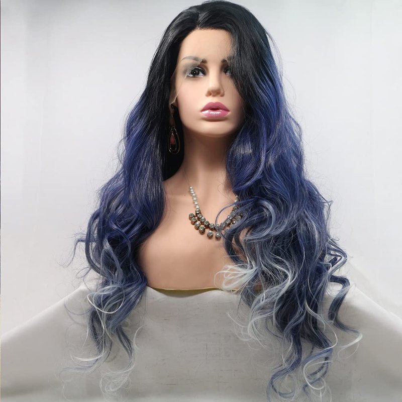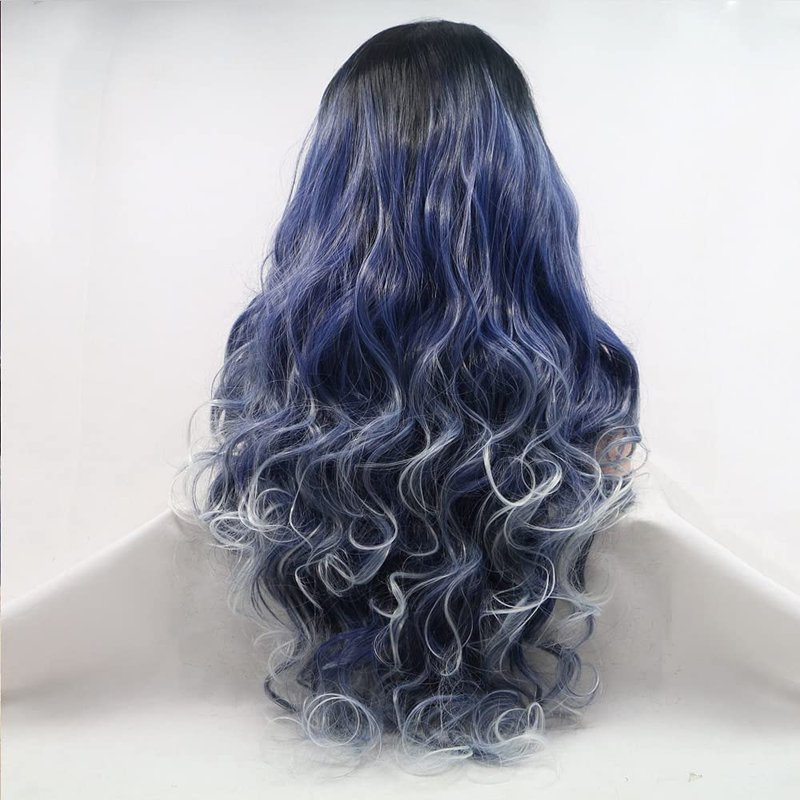 xiweiya Black to Blue Wig Heat Resistant Fiber Hair Long Ombre Blue Wigs with Blonde Tips Mixed Piano Color Middle Part Cheap Wigs 180% Density 13x3 Lace Wig For Women 24inch