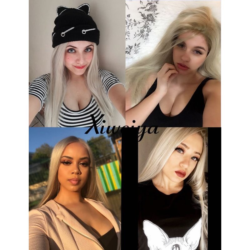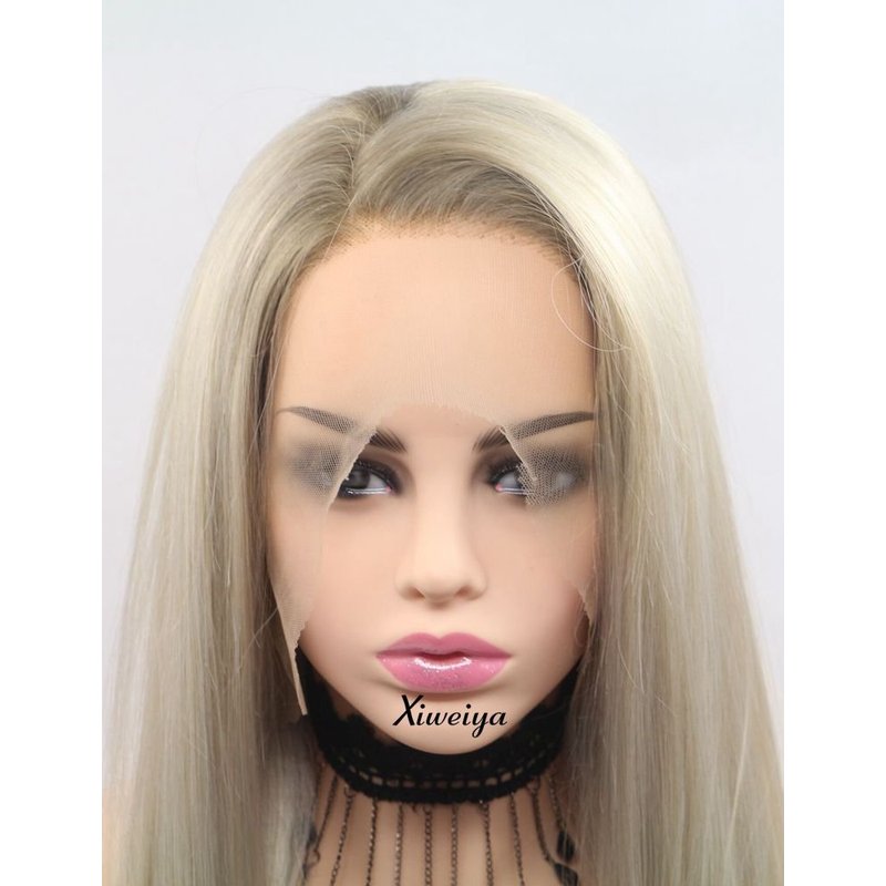 xiweiya Ombre Blonde Wigs with Light Brown Roots Glueless Side Part Long Straight Synthetic Blonde Lace Front Wig Heat Resistant Fiber Half Hand Tied for Daily Party Use 26inch