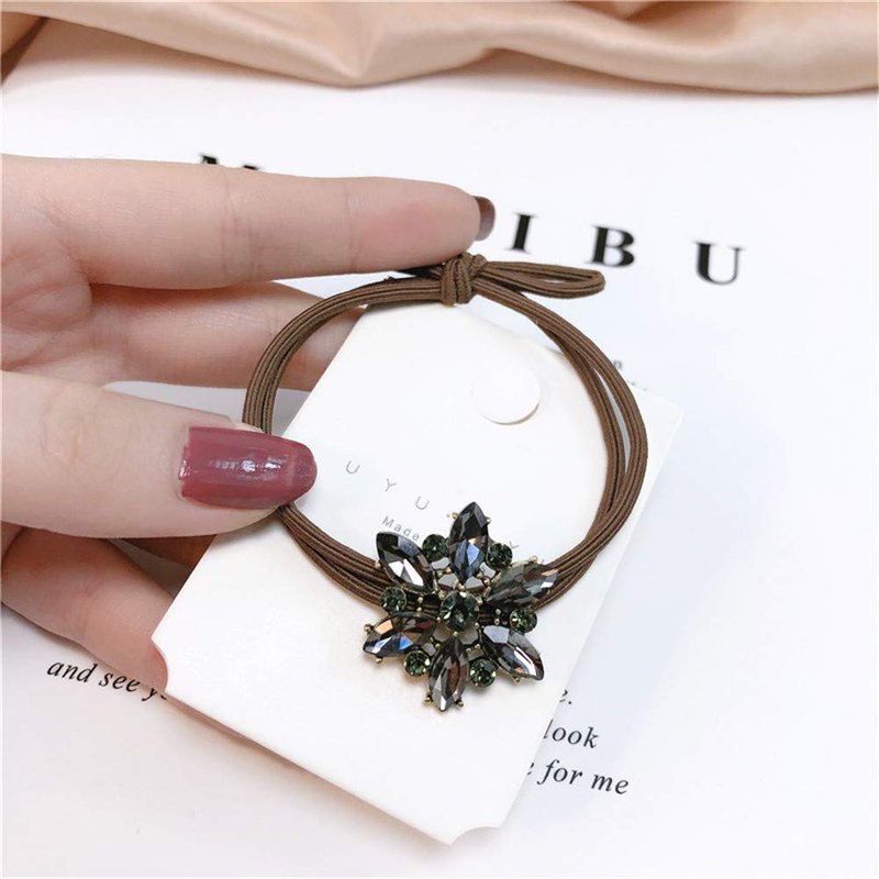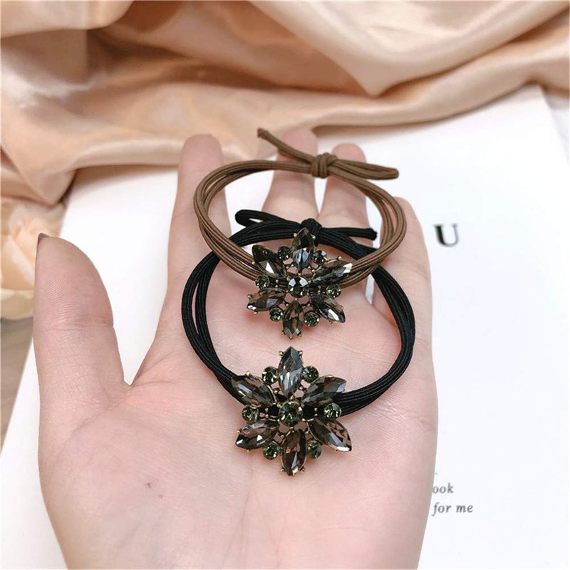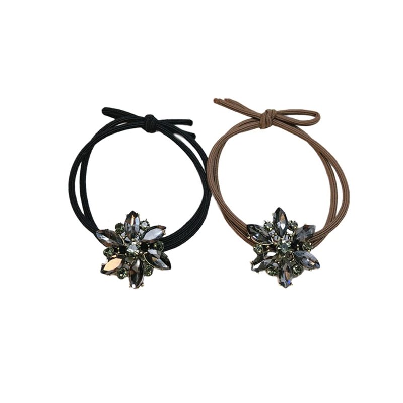 - Set of 2 elegant elastic hair ties with one decorative rhinestone crystal flower, super delicate and beautiful.
