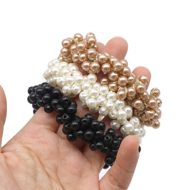 Xiwstar 3Pcs Elastic Pearls Hair Scrunchies Women Girls Beaded Bracelet Hair Ties Bands Ropes Ponytail Holder