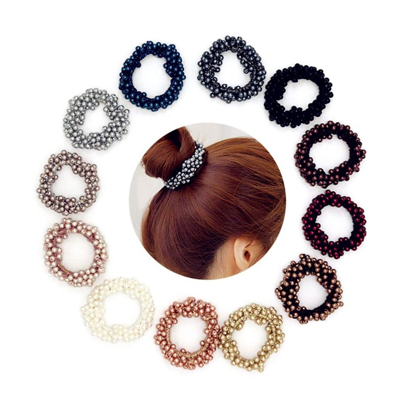 Xiwstar 9Pcs Women Girls Fashion Beaded Bracelet Hair Ties Hair Bands Ropes Scrunchie Ponytail Holder
