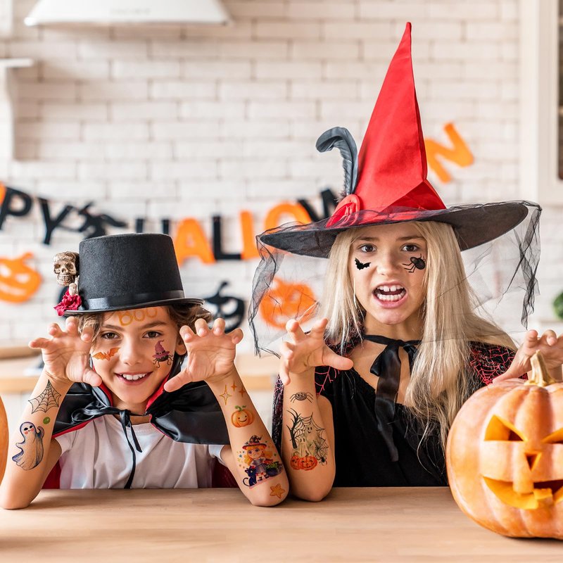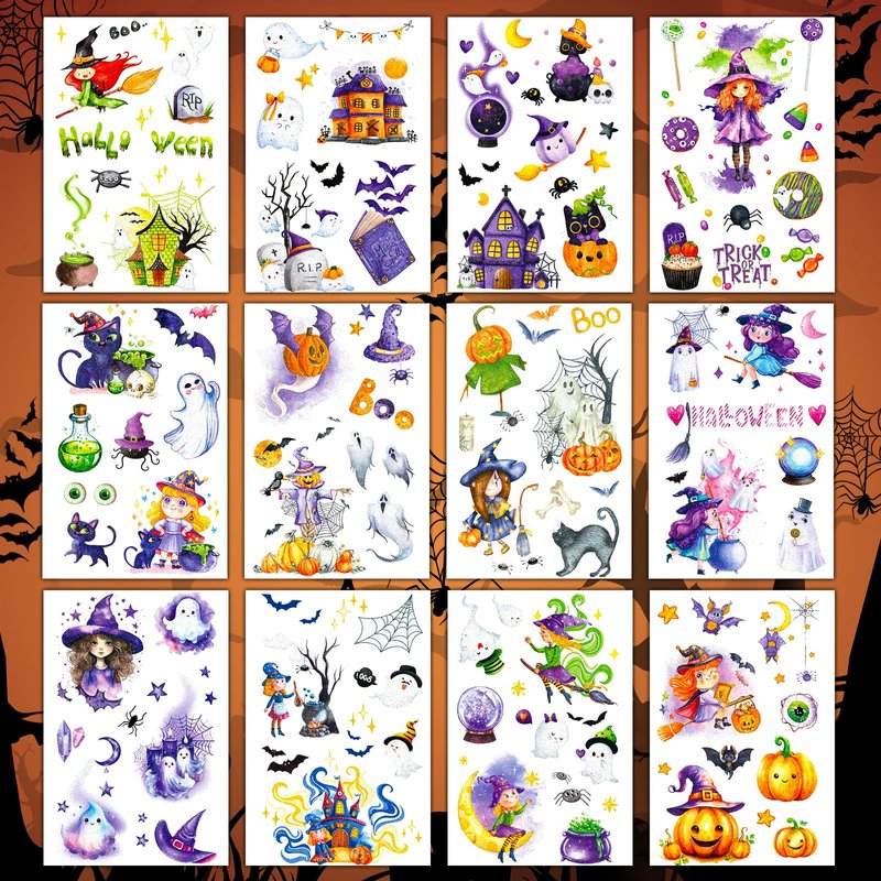 Package Include: 12 sheets Halloween glitter tattoos for kids.