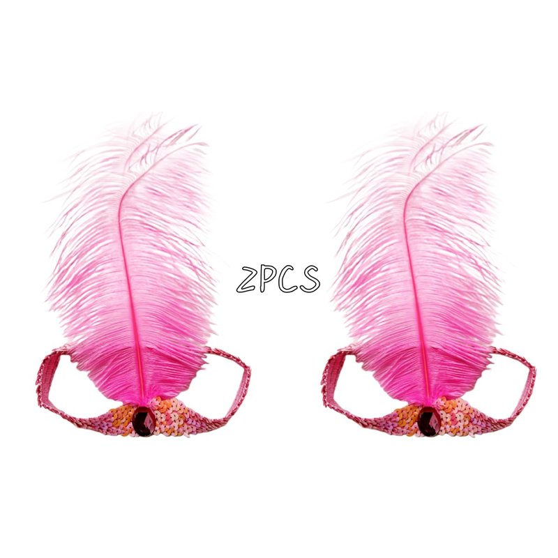 XKTEI 2pcs Feather Headdress,Sequins Headband,1920s Flapper Headpiece,Carnival Party Headwear,Costume for Gatsby Theme Party,Mardi Gras Feather Headband (Pink-1)