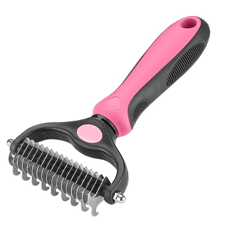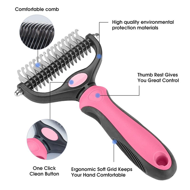 XLCL pet Pet Grooming Tool - 2 Sided Undercoat Rake for Cats and Dogs - Safe Dematting Comb for Easy Mats & Tangles Removing - No More Nasty Shedding and Flying Hair