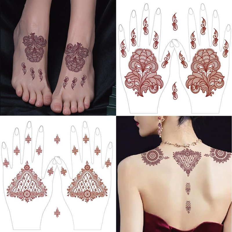 - Package Included: 12 Sheets Brown Henna tattoo Stickers. Each sheet of sticker contains pair of hand. Delicate Henna Hand stickers with various patterns