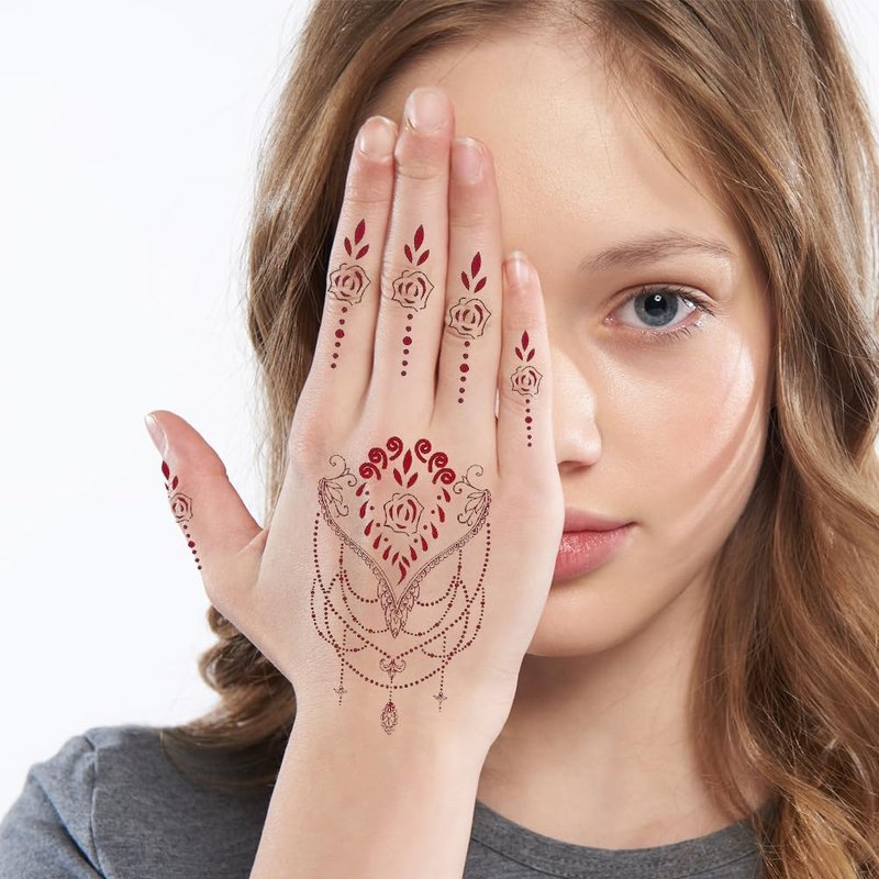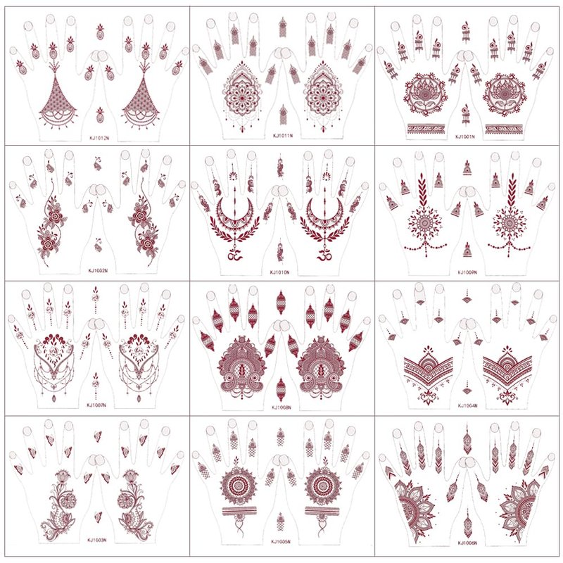 - Package Included: 12 Sheets Kid's Brown Henna tattoo Stickers. Each sheet of sticker contains pair of hand. Delicate Henna Hand stickers with various patterns
