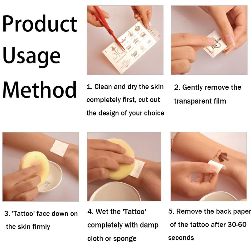 - Easy to Use: Just need to pick one sheet henna tattoo you like, cut it and stick on your skin face down, wet it with water, and gently press it for a few times. Transferred correctly can make the tattoo last longer