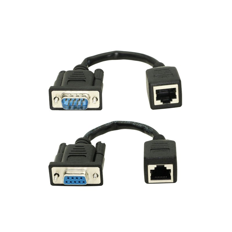 DB9 Serial RS232 Port to RJ45 Cat5/Cat6 adapter, Interface: DB9 Male to RJ45 female; 9pin/8P8C.the adapter run RS232 data over long distances (up to 100m) using UTP Cat 5/ Cat6 cable to bridge the gap.