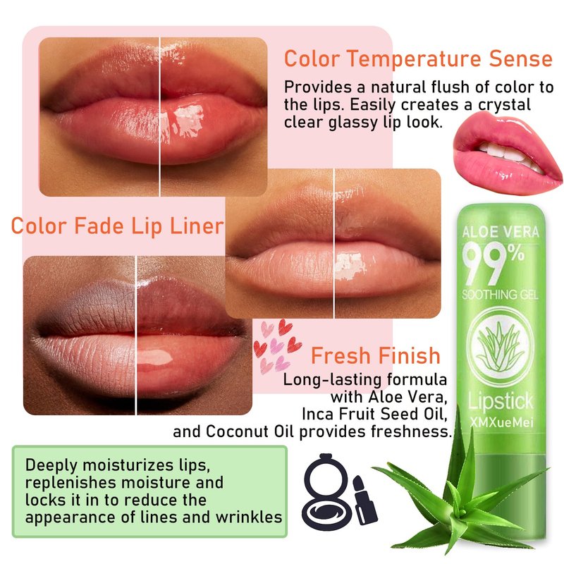 - 💋【Long-Lasting】Aloe vera lipstick has strong waterproof and smudge-proof function, not easy to fall out of color, beautiful lip makeup can be kept all day.