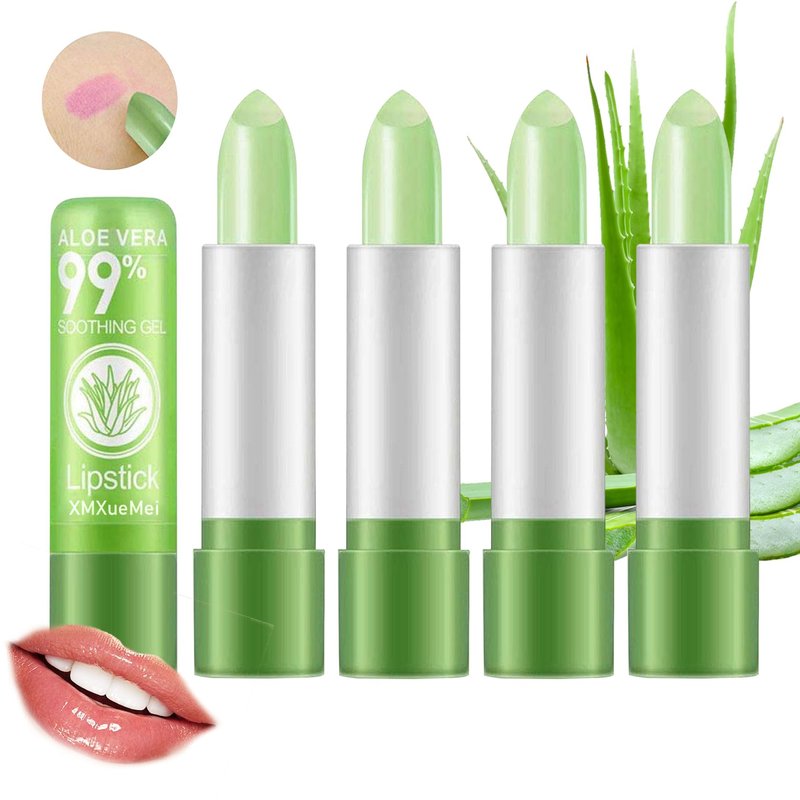 XMXueMei 4PCS Aloe Vera Lipstick,Color Changing Lipstick,Moisturizing Magic PH Jelly Lipstick Set for Women,Tinted Lip Balm Long Lasting Waterproof Color Change Lip Gloss Makeup