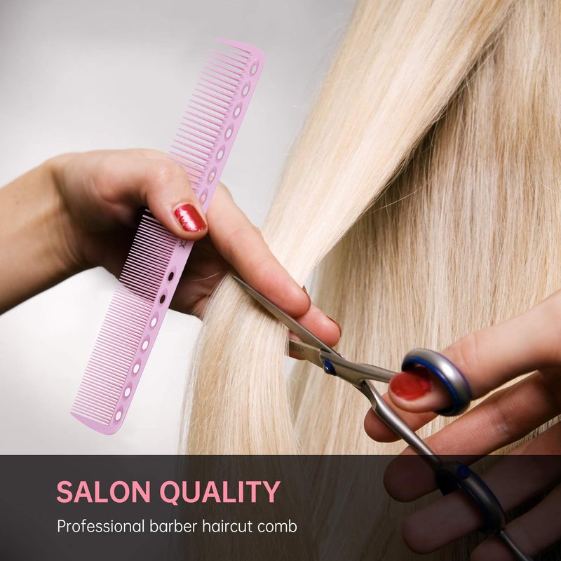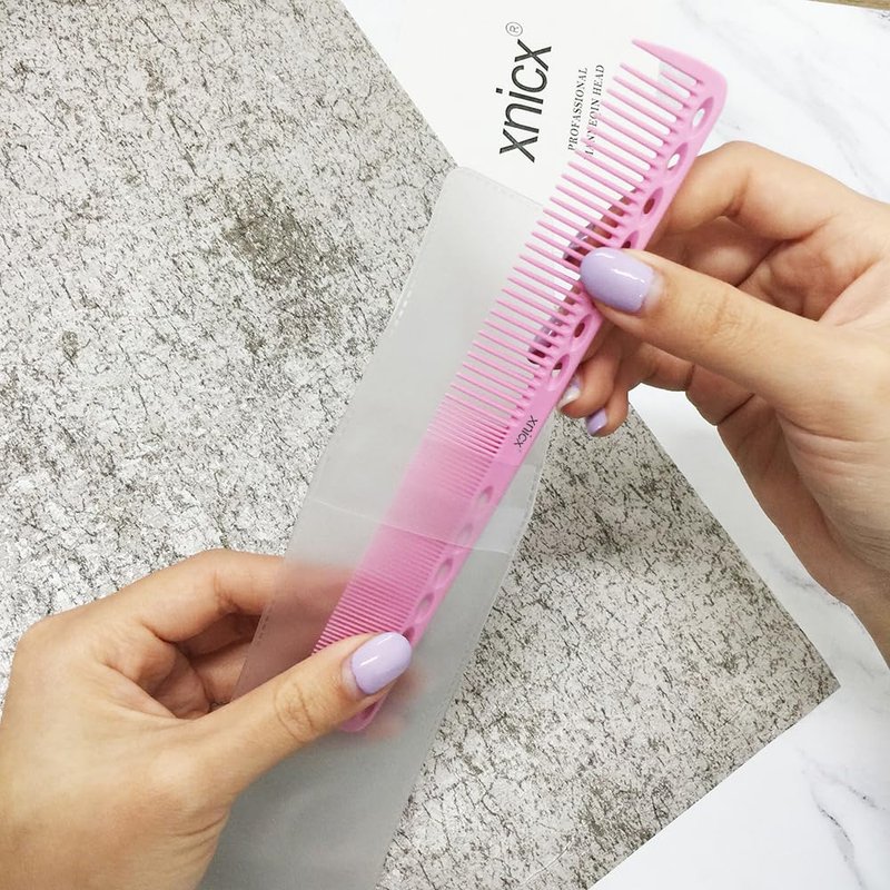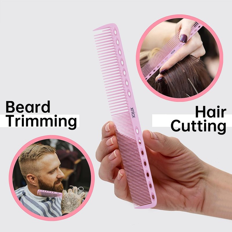 - 【Pink Cutting Comb】xnicx hair cutting comb features two different sizes of teeth that meet your multi-purpose combing need on cutting, backcombing and other work. The fine teeth are perfect for cutting or styling and the standard teeth ideal for conditioning, sectioning or relaxing hair.The shortened first tooth of the cutting comb is great for picking up sections and creating partings. The 180 ℃ heat resistant and chemical resistant allows for combing with hair dryer.