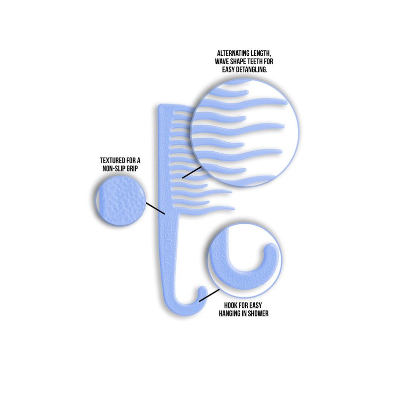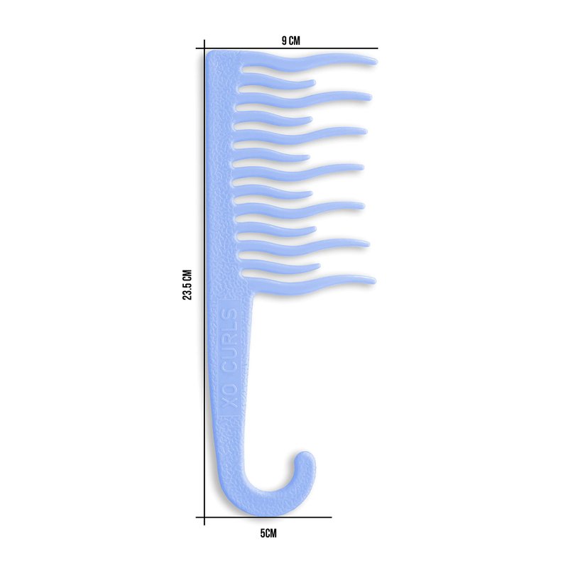 - DESIGN: XO Curls curly hair comb has wide teeth, specially designed keeping curly & wavy hair in mind. XO Curls wide tooth comb for curly hair has a textured for a non- slip grip, smooth edges for a pain free experience, convenient hook for hanging the shower.