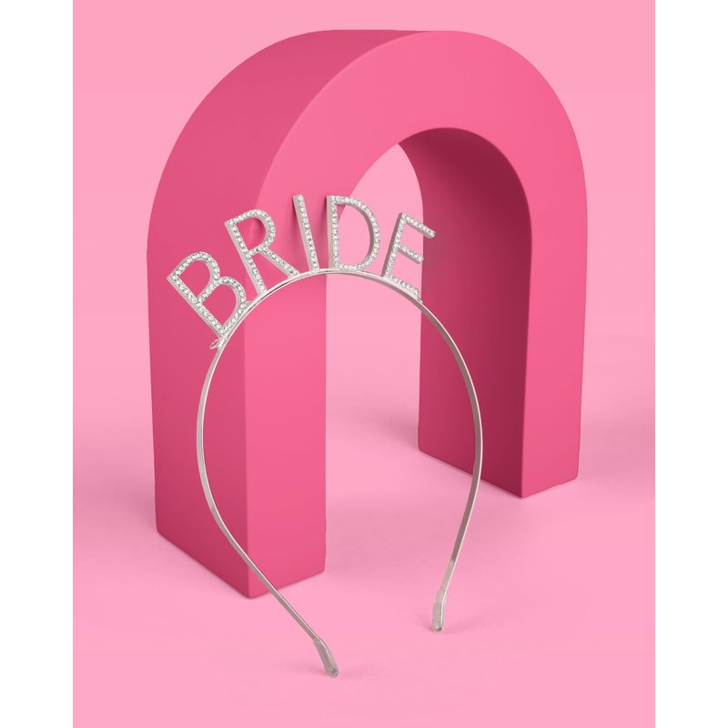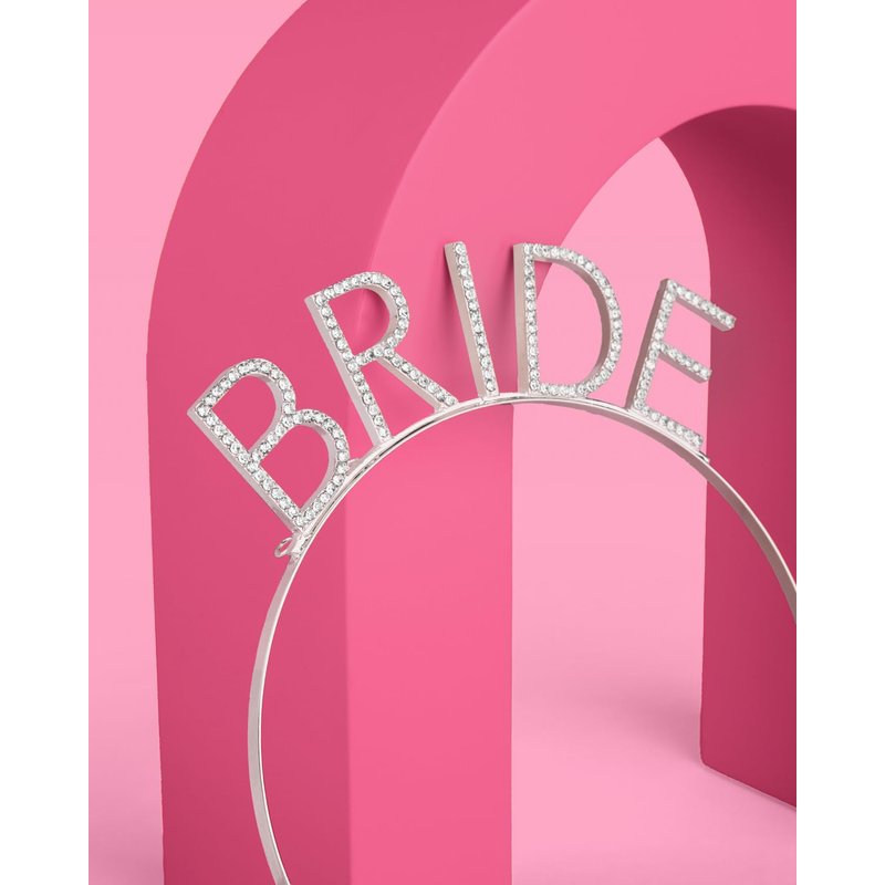 Say hello to the Bride's new fav hair accessory! Our metal Bride headband is made with a silver rhinestone "Bride" logo - which means your hair's gonna be looking bomb on your big night out! Get ready to shine bright like a diamond at your Bachelorette Party or Bridal Shower! Our headband comes with a detachable white tulle veil...Call it "Party Favor Perfection!"! PLUS, it's a gift that we know that lovely bride-to-be will actually use + love! This bridal hair accessory is truly the ultimate bachelorette party decoration!