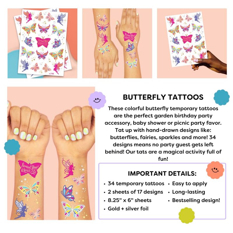 xo, Fetti Butterfly Tattoos for Kids - 34 Glitter styles | Birthday Party Supplies, Butterfly Party Favors + Fairy Decor