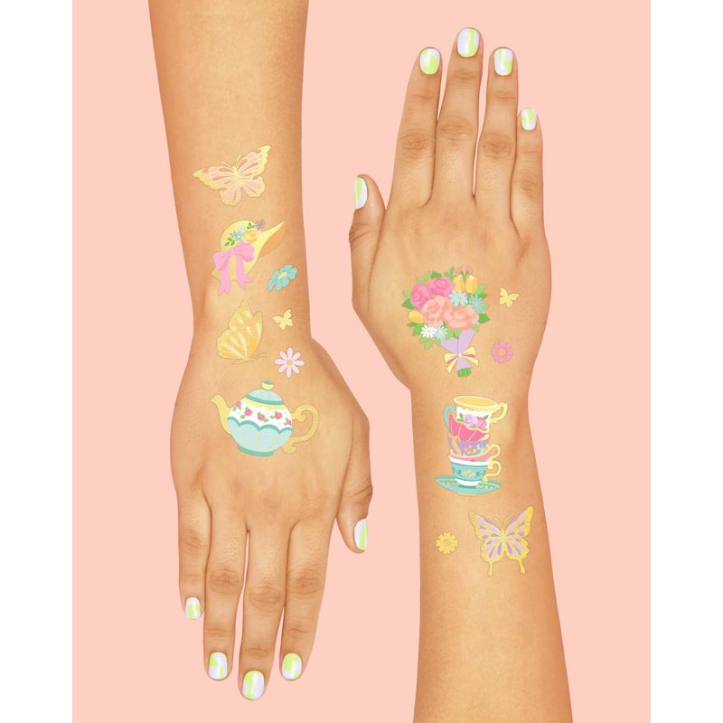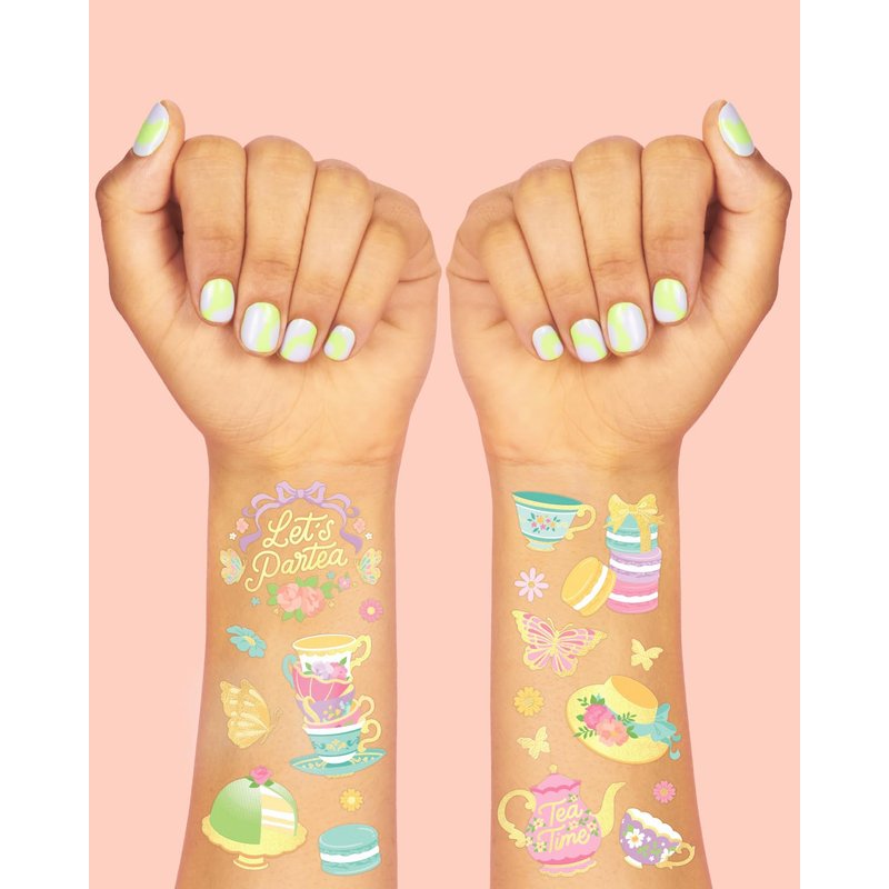 - Tat up: with foil designs like tea cups, butterflies, macaroons, tea kettles, cupcakes + more. Guaranteed to be a favorite by all party guests!